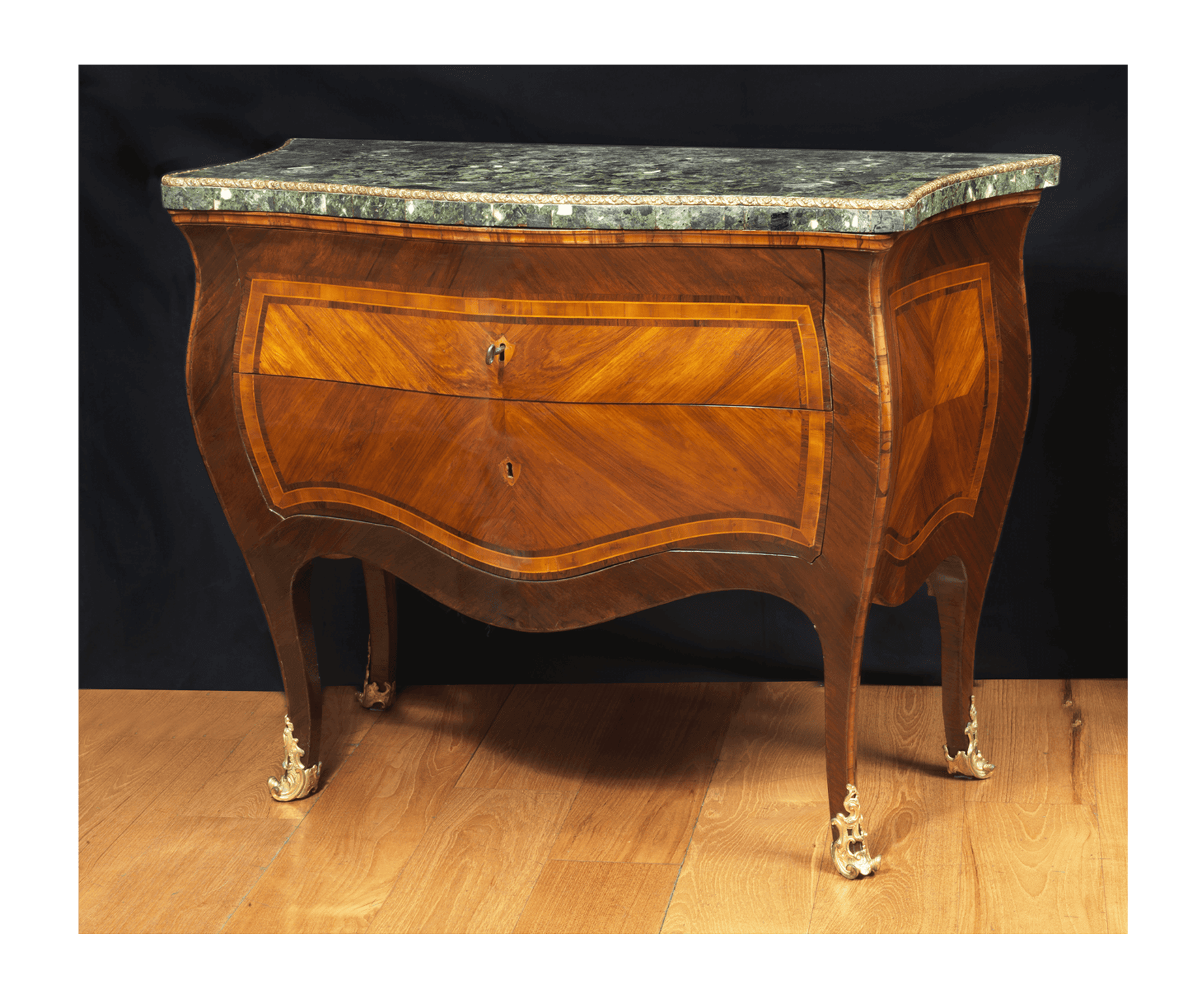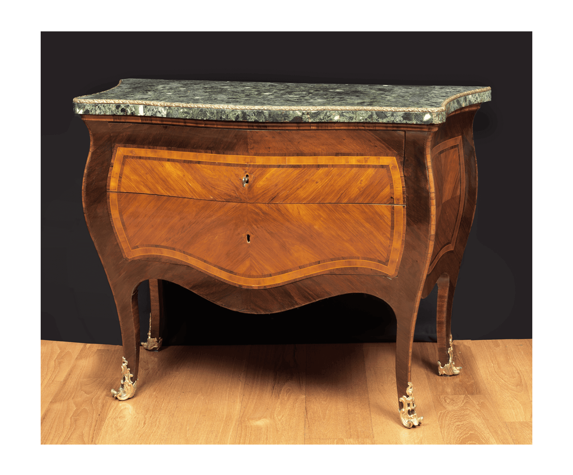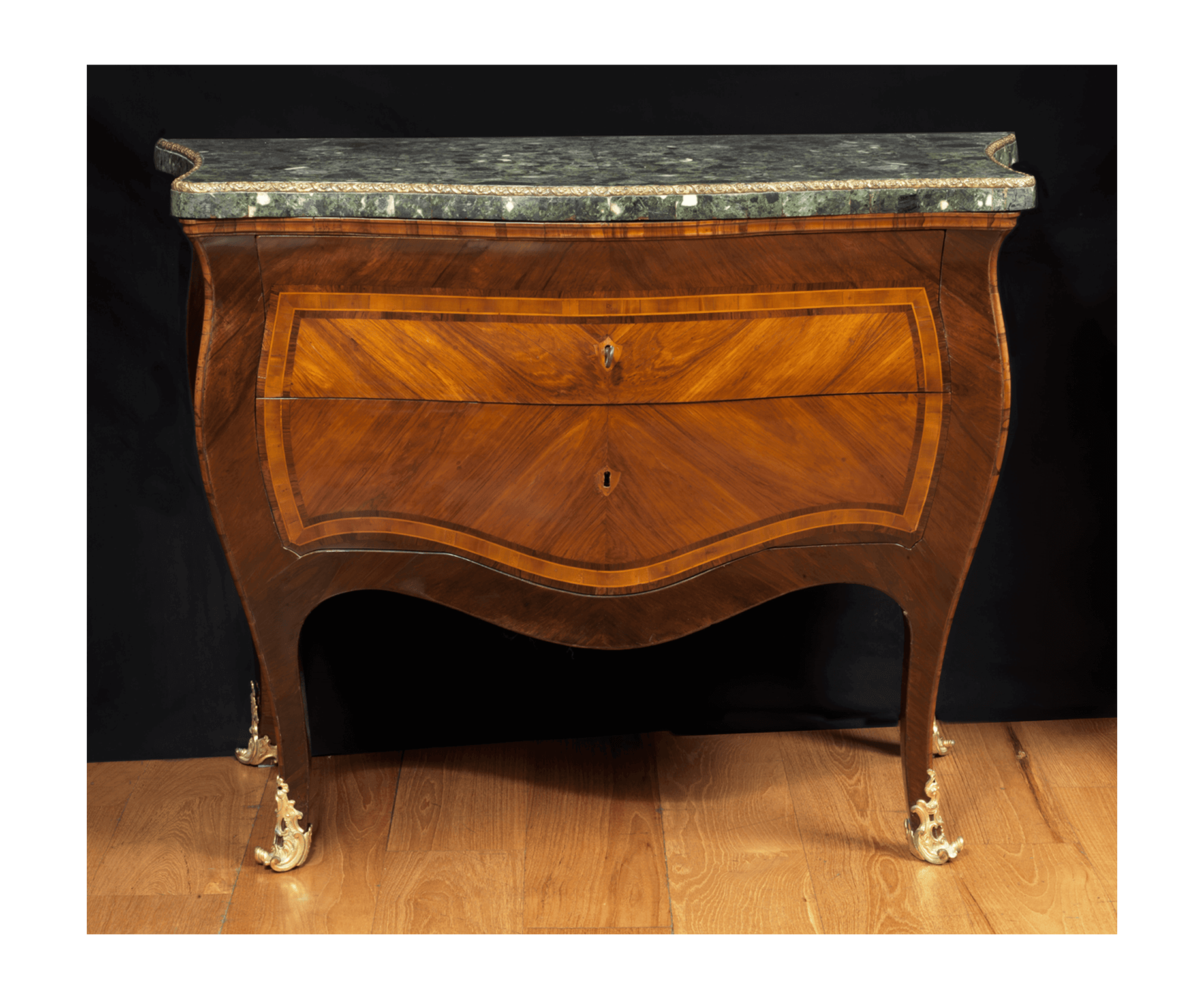 Piani di marmo verde antico con ciglio di bronzo dorato